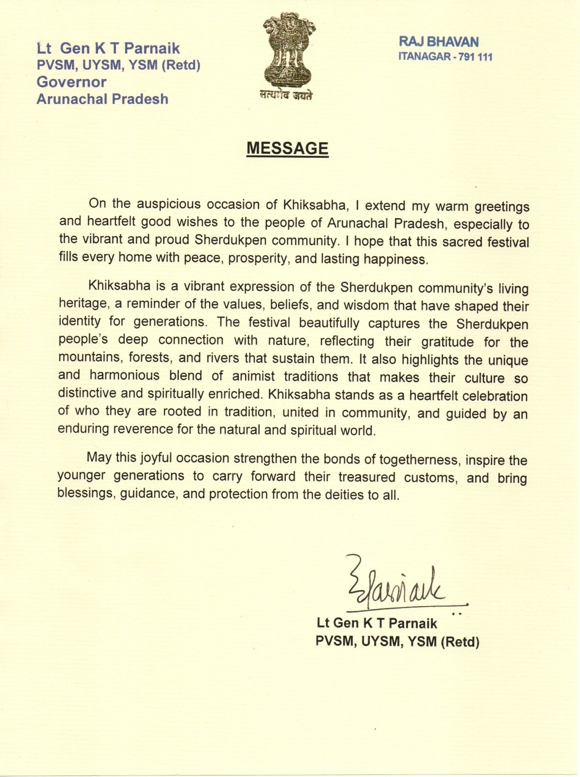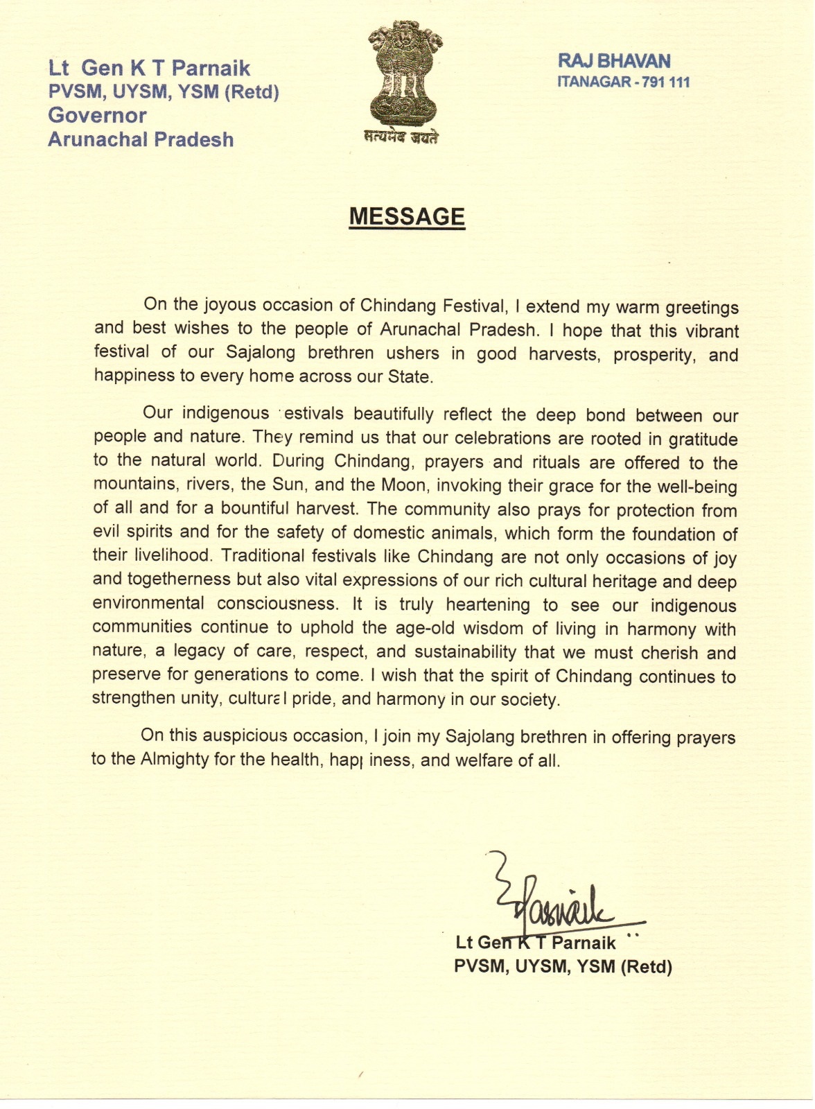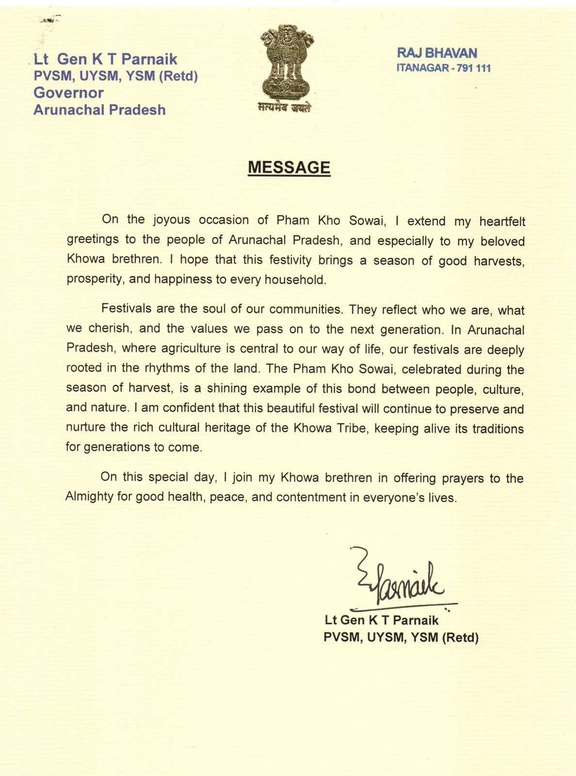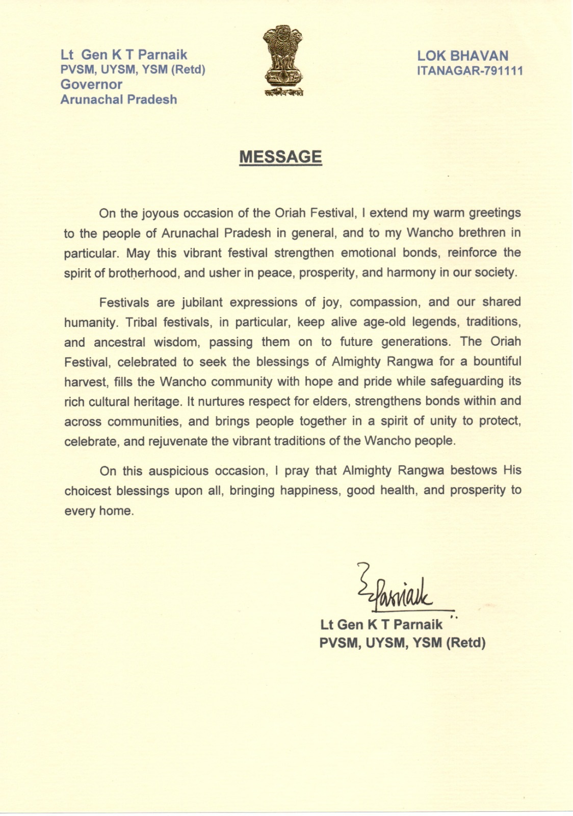 | 11/4/2025 | Governor's message on the occasion of Pongtu Festival | View |