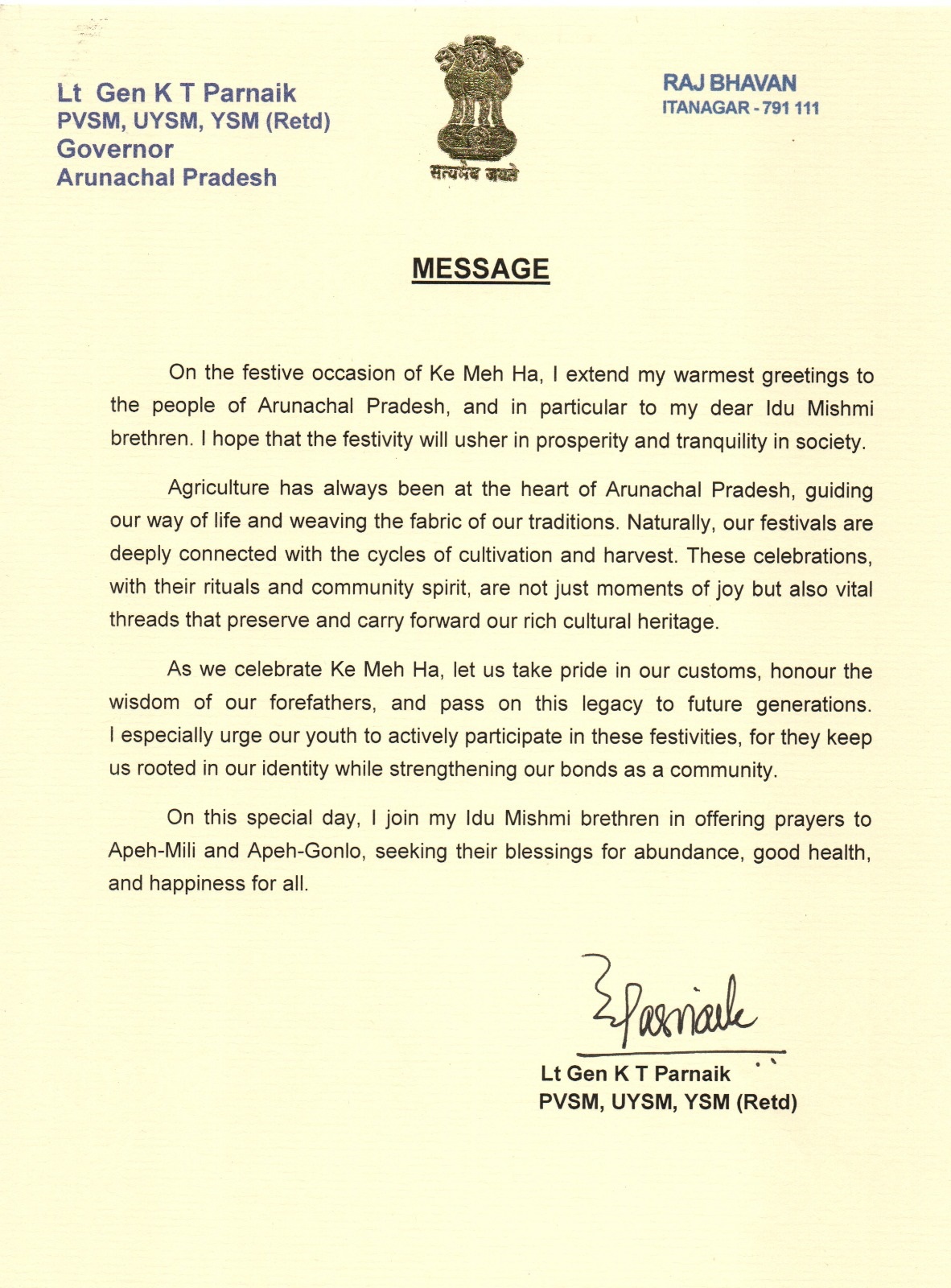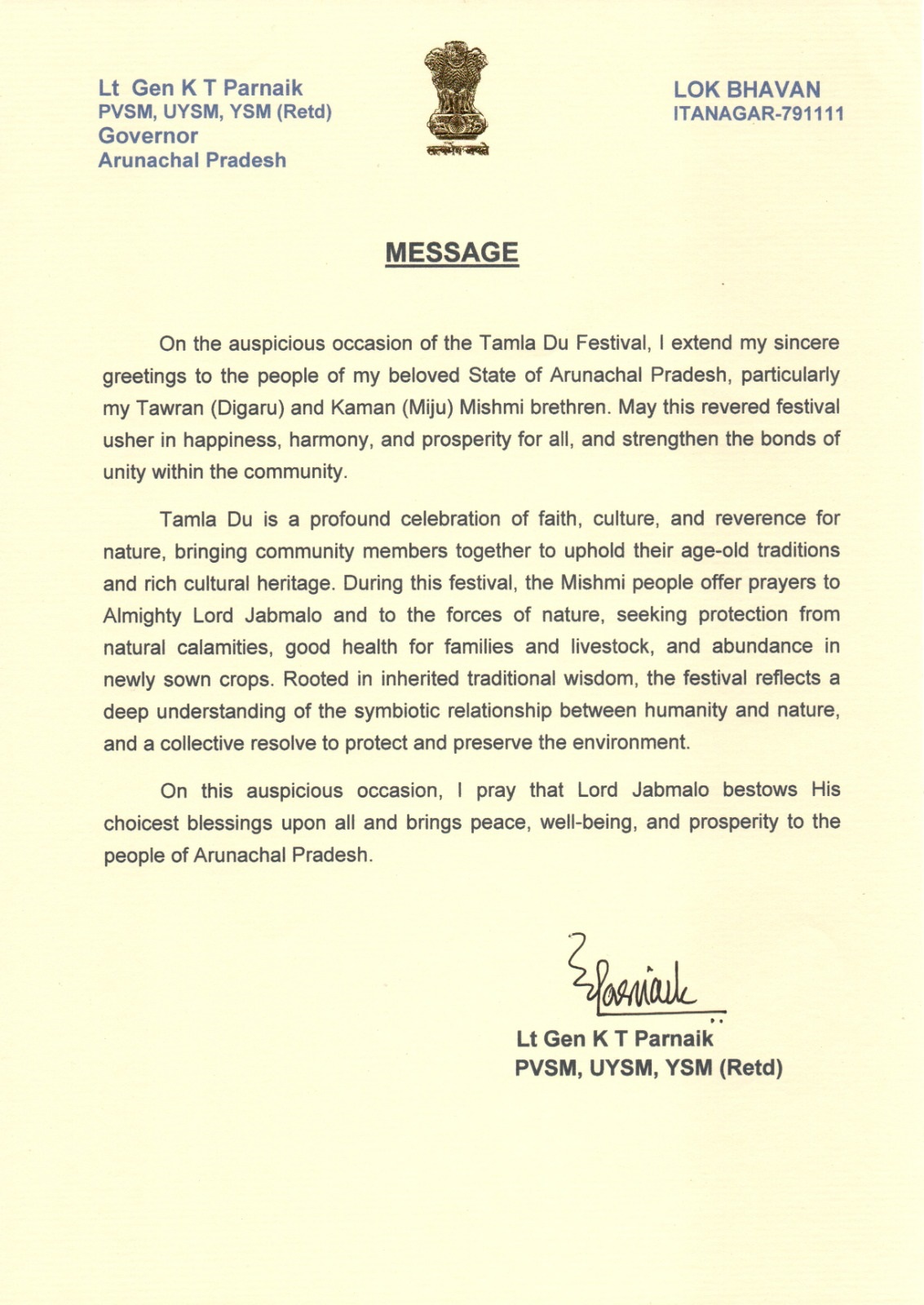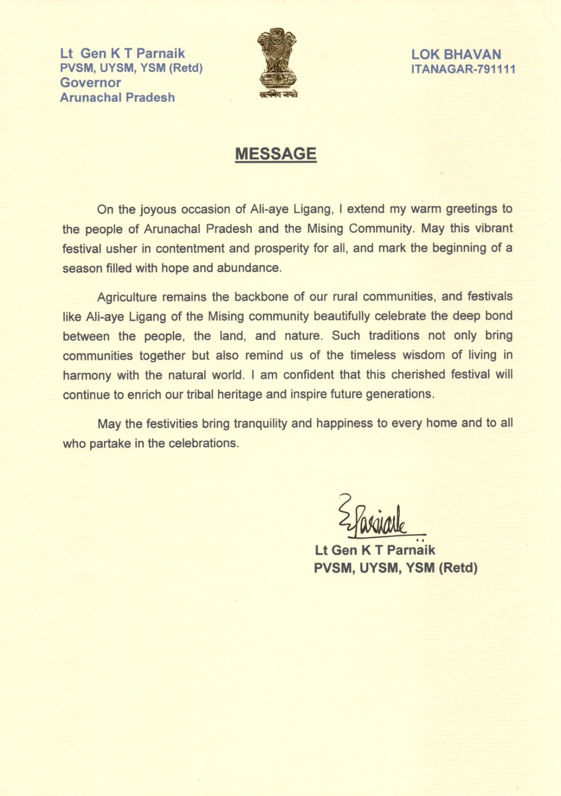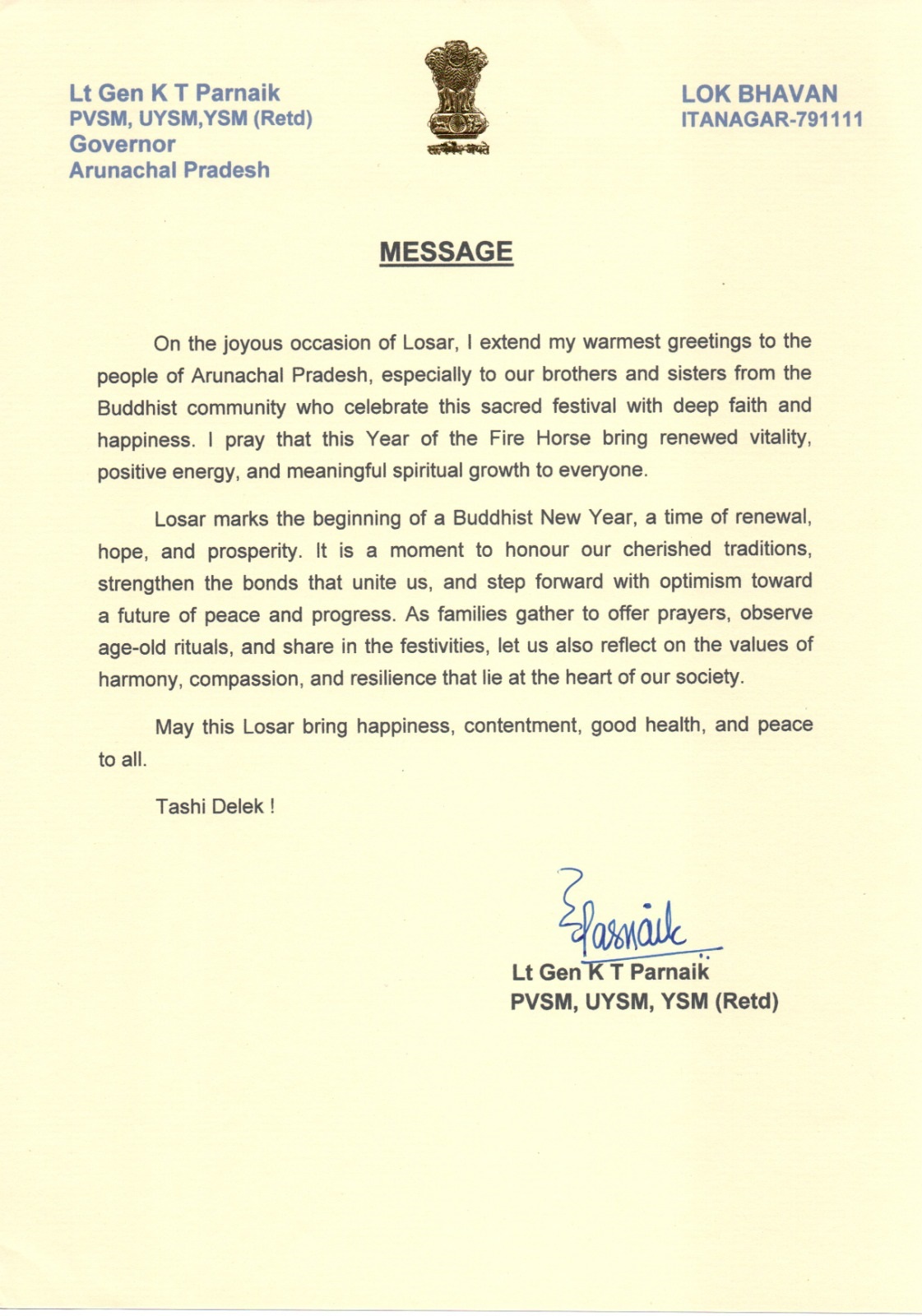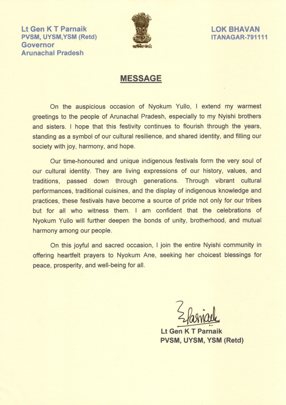 | 26/2/2025 | Governor's message on the occasion of Nyokum Yullo Festival | View |