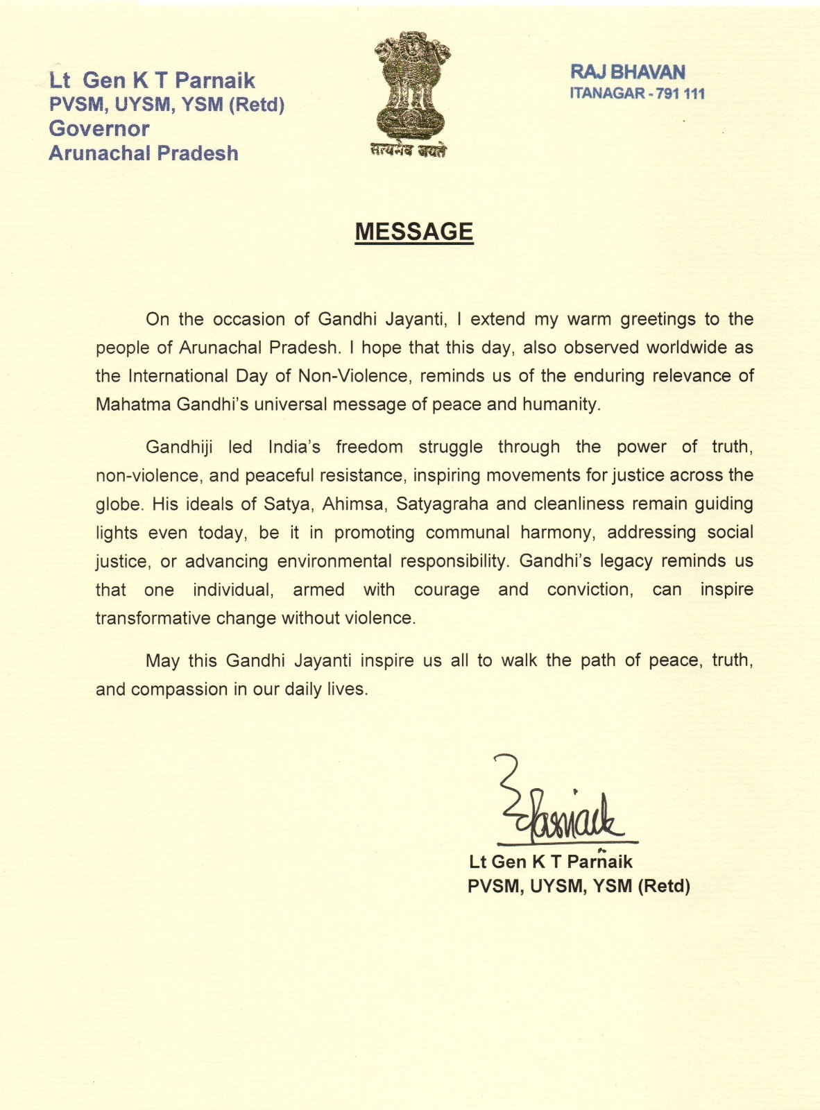 | 02/10/2025 | Governor's message on the occasion of Gandhi Jayanti | View |