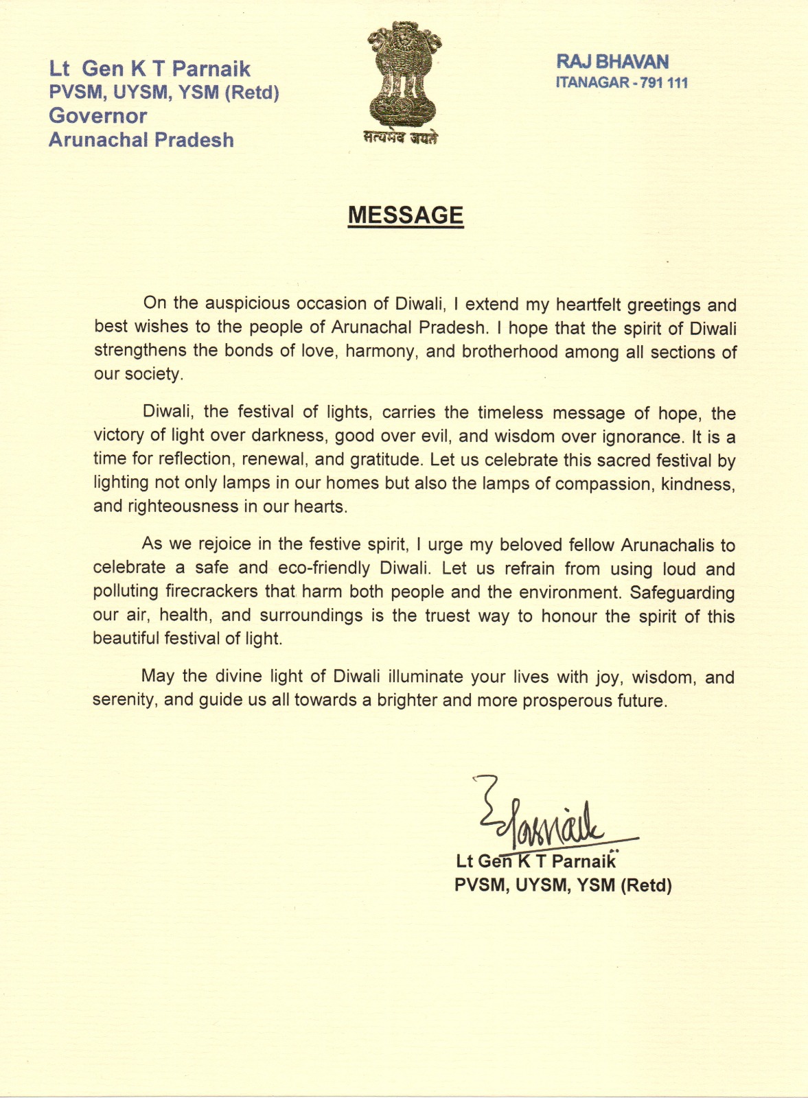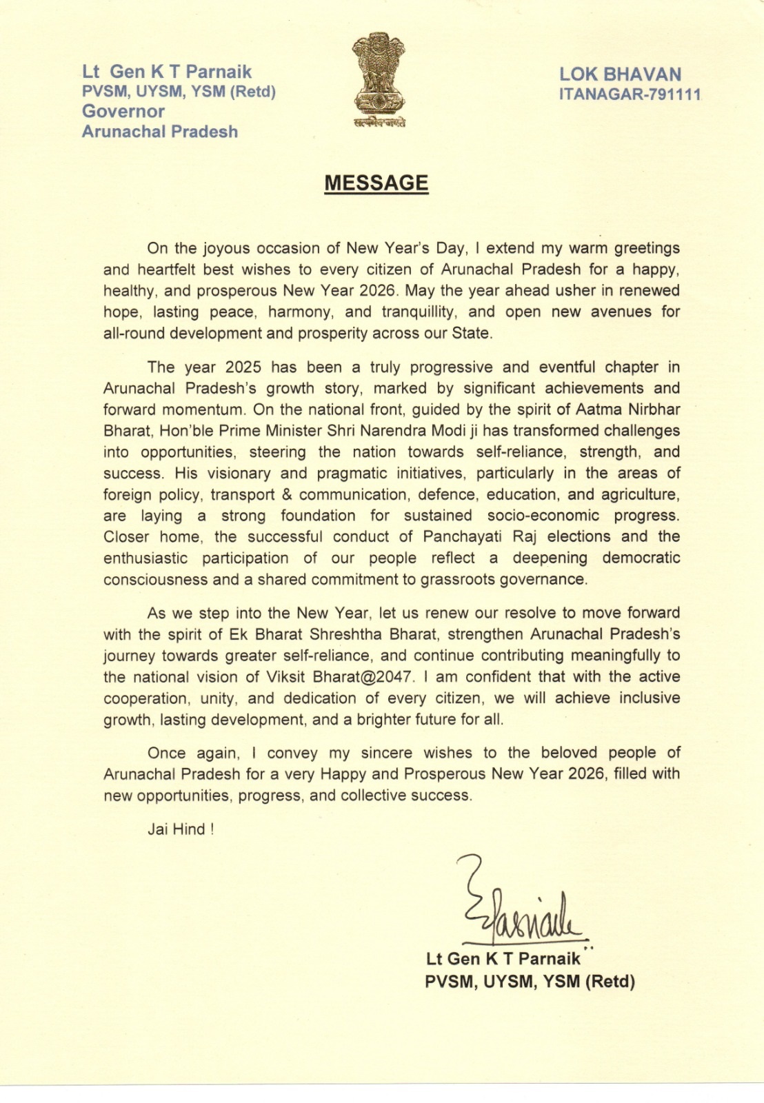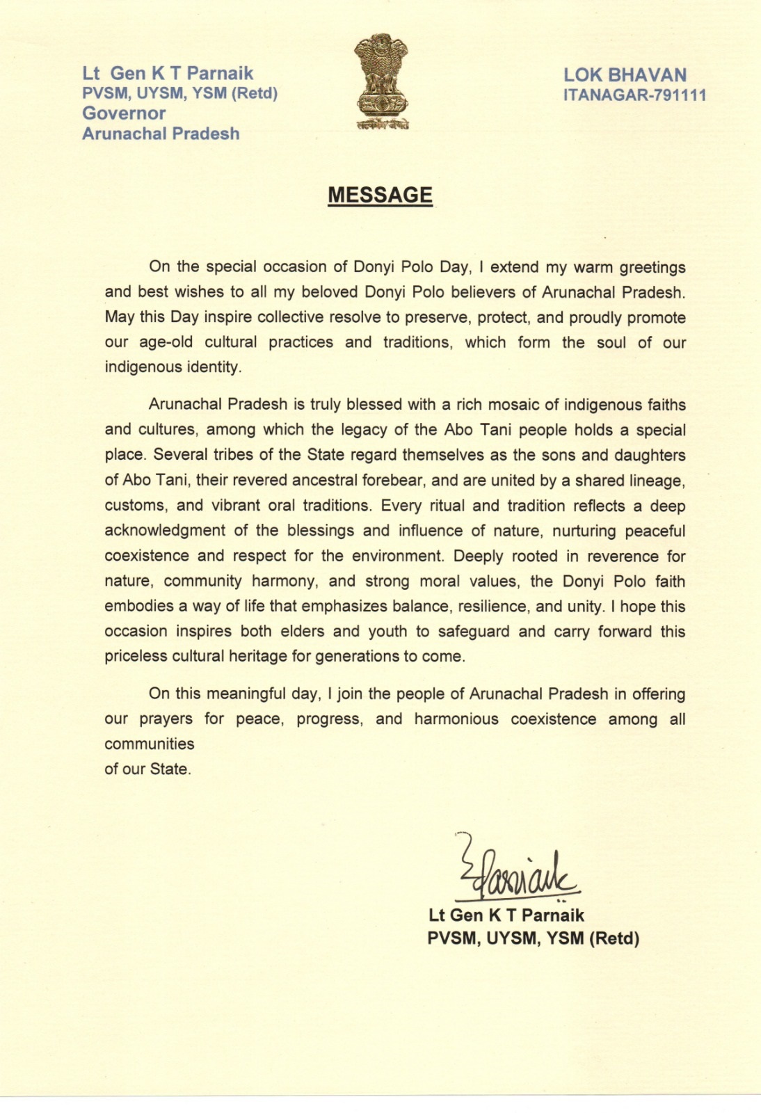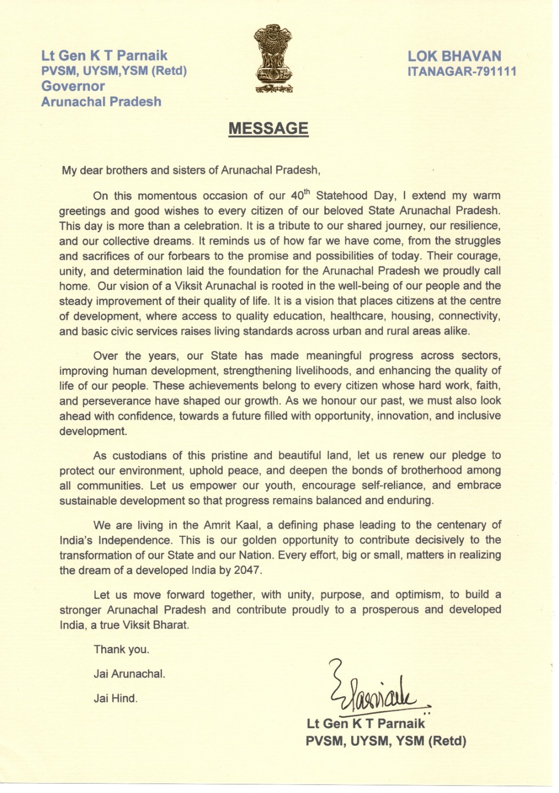 | 31/12/2025 | Governor's message on the occasion of Donyi Polo Day | View |