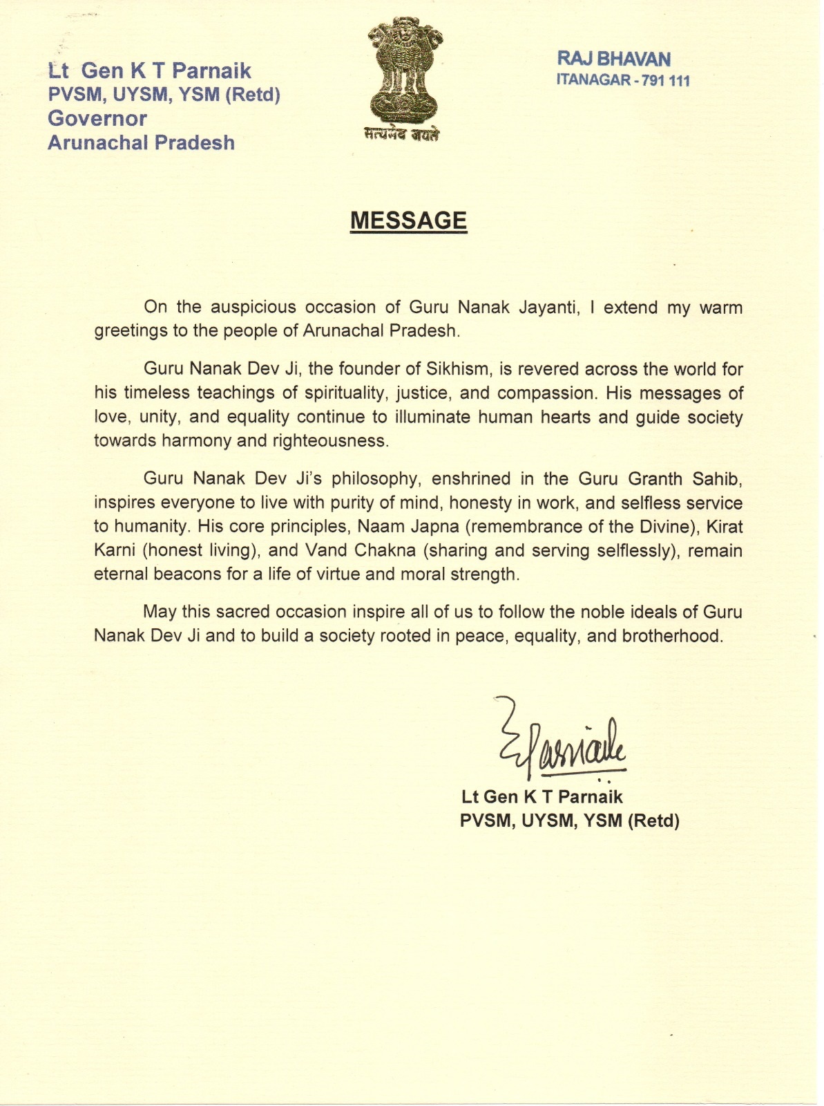 | 07/11/2025 | Governor's message on the occasion of Guru Nanak Jayanti | View |