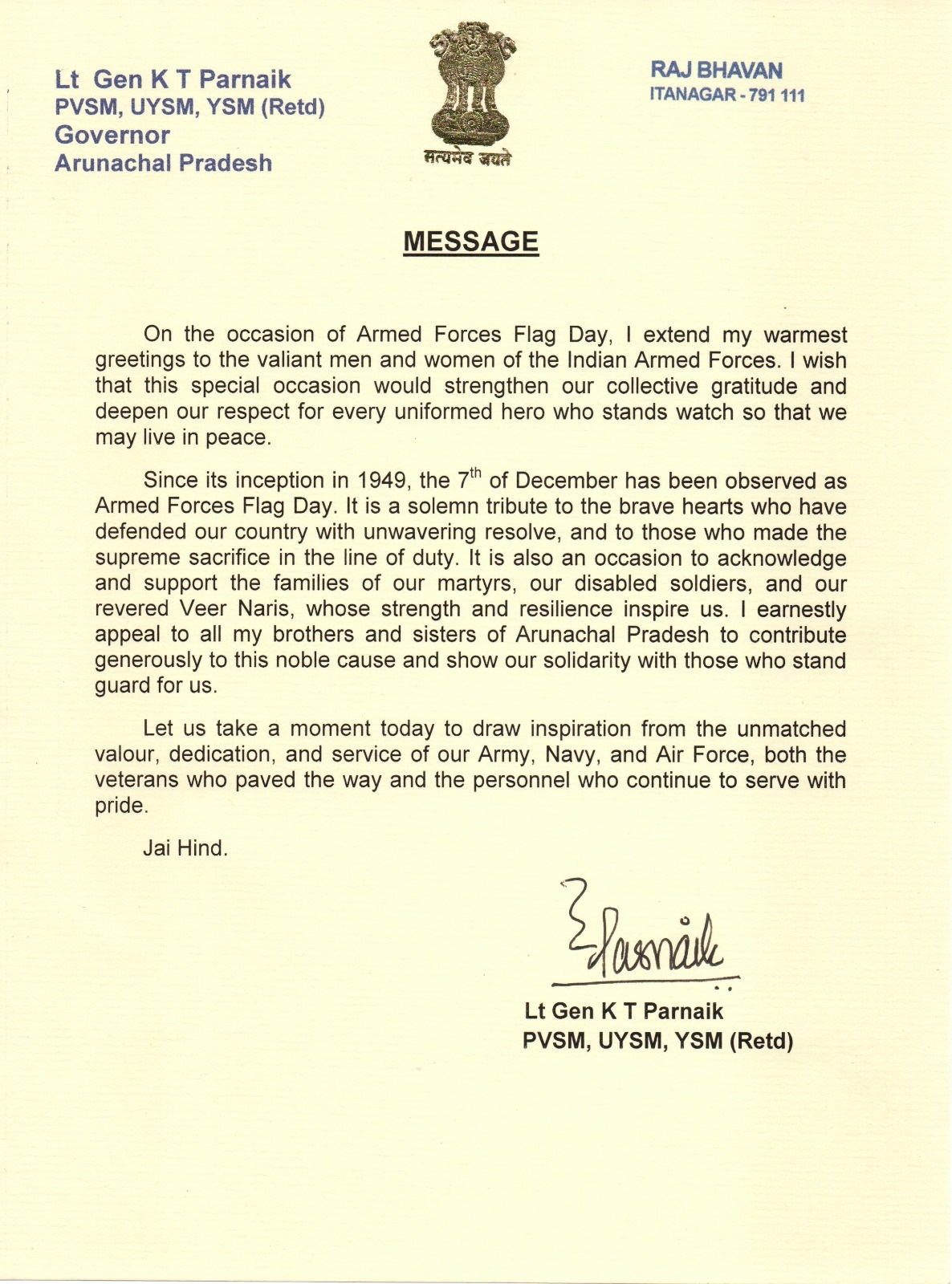 | 07/12/2025 | Governor's message on the occasion of Armed force Flag Day | View |