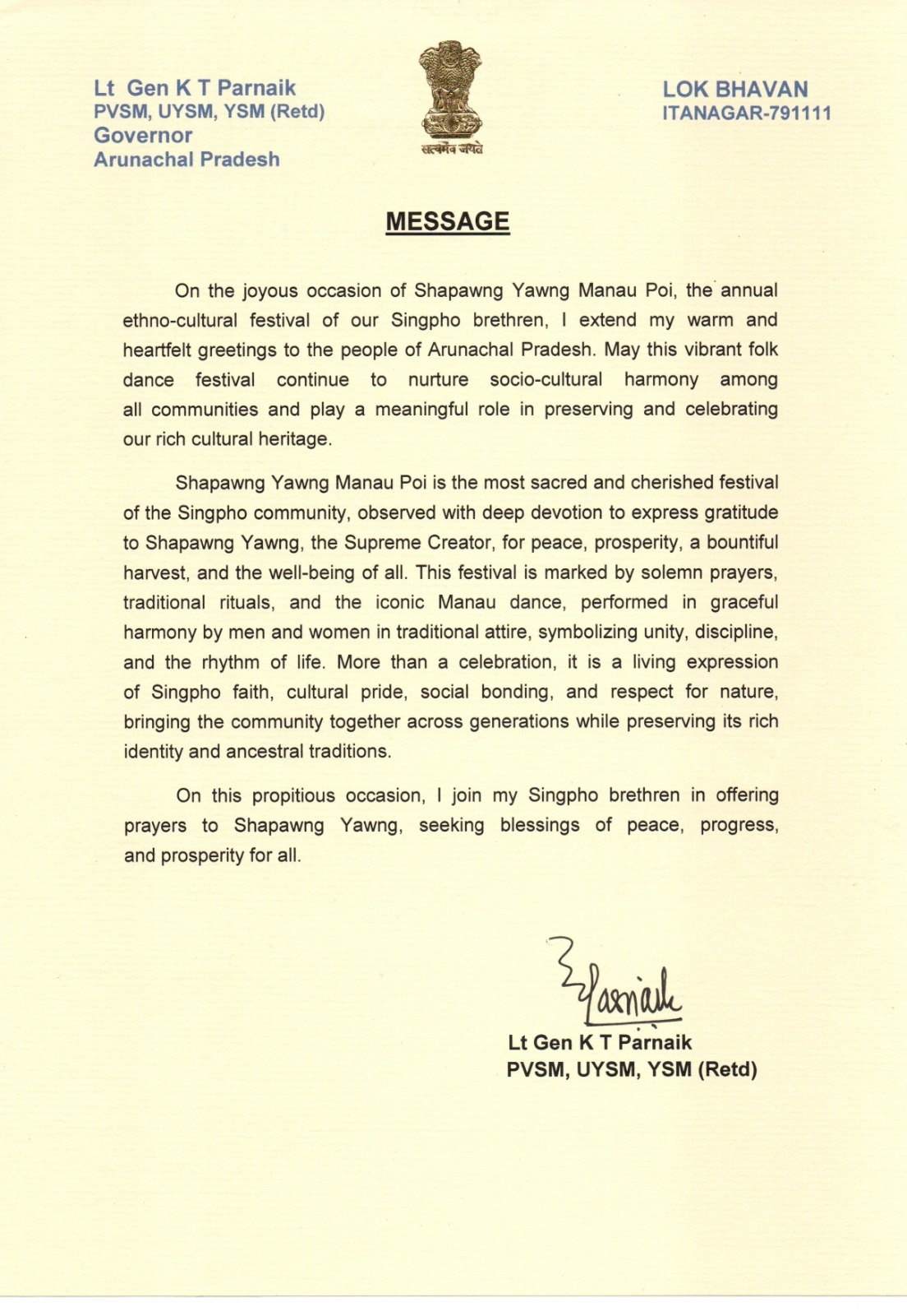 | 14/02/2026 | Governor's message on the occasion of Shapawng Yawng Manau Poi festival | View |